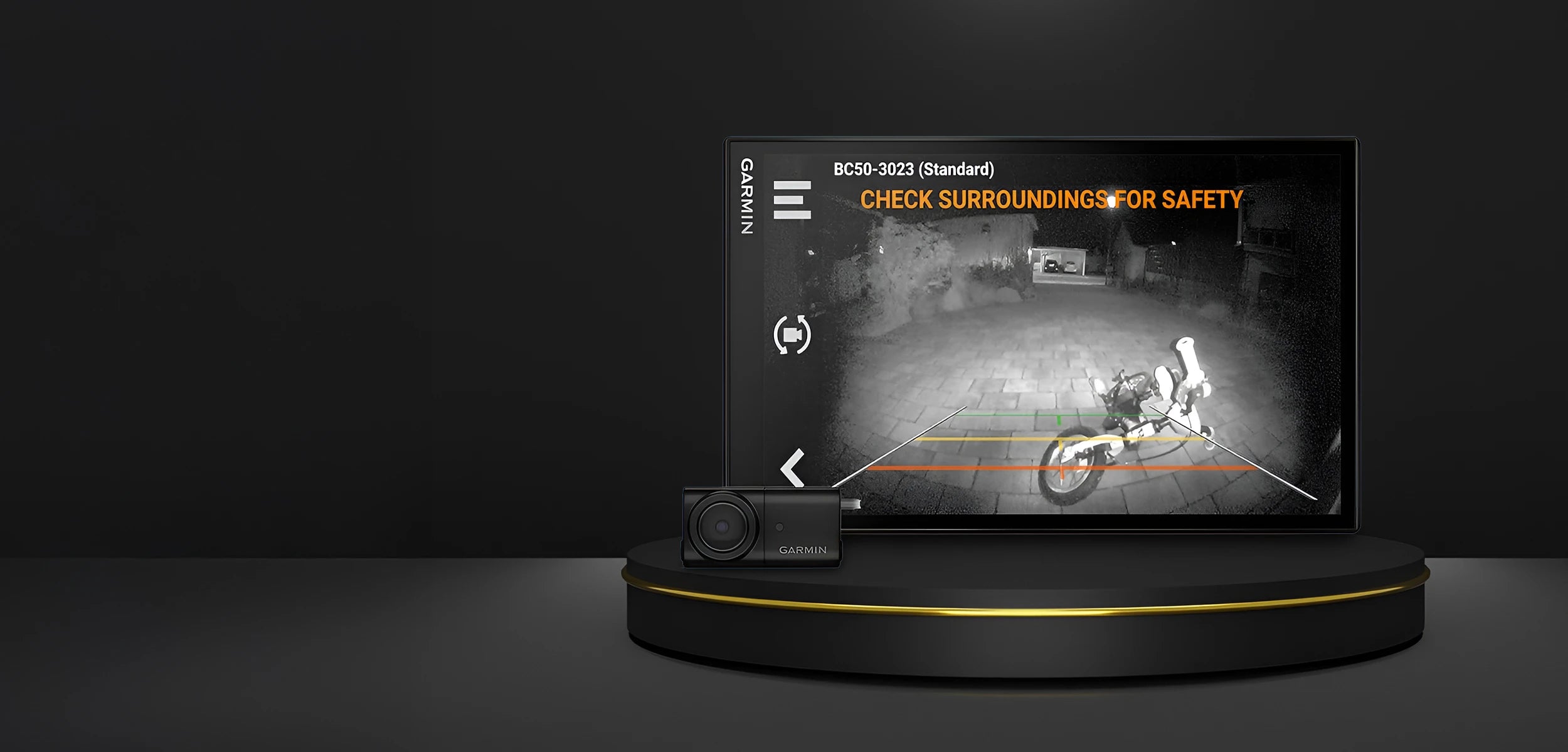 Garmin’s NightGlo™ technology lights up to 20 feet behind your vehicle, providing outstanding visibility for safer reversing at night.