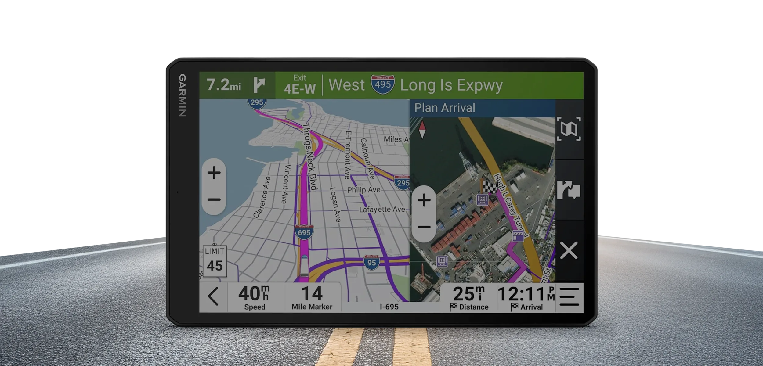 Never take the wrong road again. Get routes made just for your truck, with warnings for steep hills and other hazards ahead.